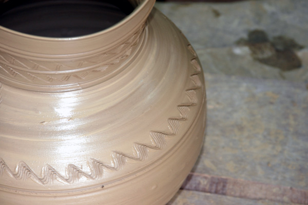 このように高熱で焼かれた土器は、粘土に含まれていた鉄分やガラス、 珪石などが溶け込み、土器の表面を覆ってガラス質の自然釉を作ります。また、炎の回りや灰のかかりなどで、土器の一つ一つが個性的な作品として生まれ変わるのです。