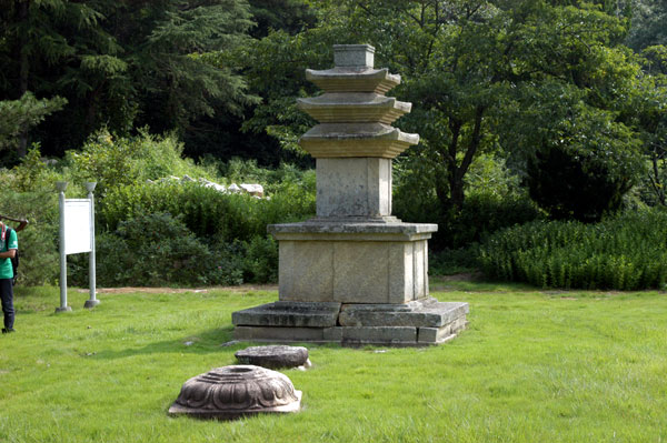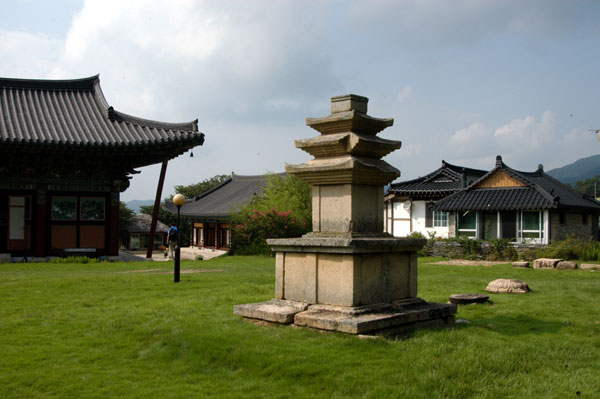 現在、寺址には最近建てられた石造毘盧遮那仏を本尊にする金堂があり、金堂の裏側に崩壊していたのを1965年に復元した高さ約3.3メートルの統一新羅の典型的な三層石塔があります。
