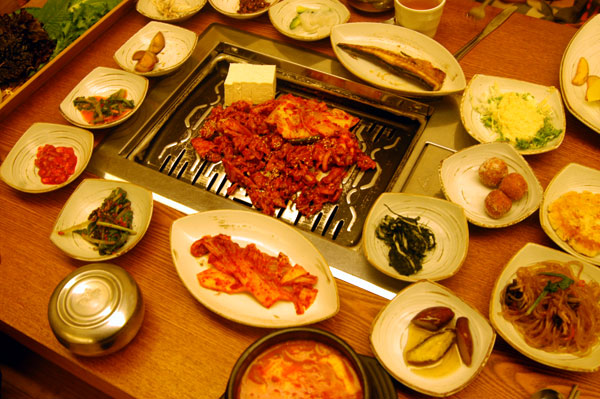 You can enjoy 18 delicious vegetables around the grill pan, side dishes such as grilled mackerel and bean pancake, and Gongilang set meal with grilled marinated pork and tofu kimchi on the grill in the center of the table. And pork cutlet with beans on it for families with children.
