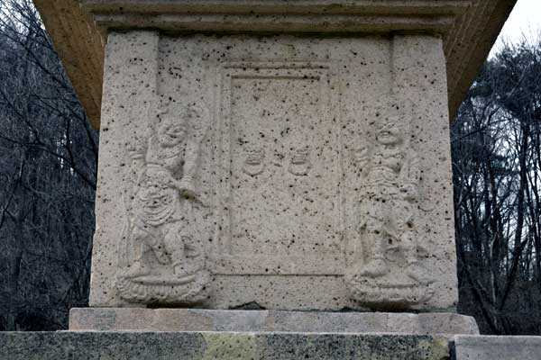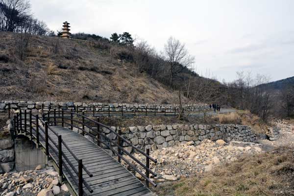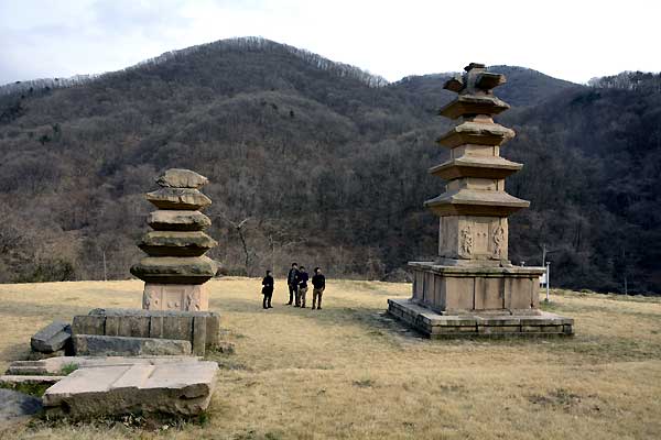 Janghang-ri Temple Site in Gyeongju built a twin tower using a narrow valley space and placed a gold hall behind it. Although it is considered to be a typical stone pagoda of the Unified Silla Period, the remains of the auditorium and corridor have not yet been identified.