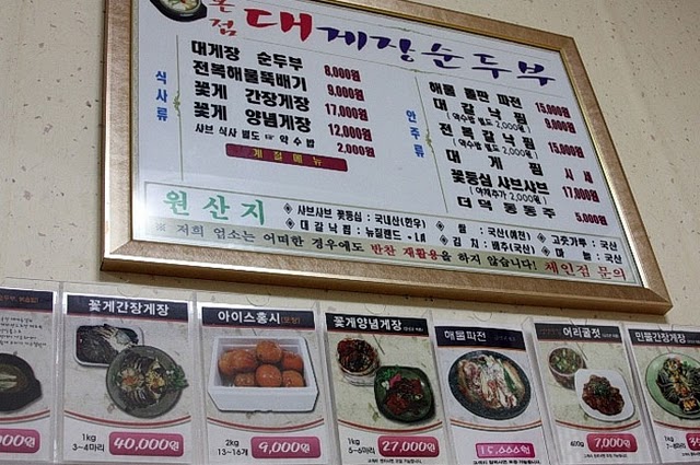 식당 입구 앞이 주차장으로 사용하는 이곳에 들어가면 “금성관을 찾아오신분들에대게장을 저렴한 가격에 판매합니다!” 라는 글자와 함께 가격표시가 된 각종 대게장사진이 눈에 들어옵니다. 이 집은 집에서도 손쉽게 대게장 순두부를 만들어 먹을 수 있도록 ‘대게장’과 ‘게장’ 등을 즉석에서 판매하기도 한답니다.