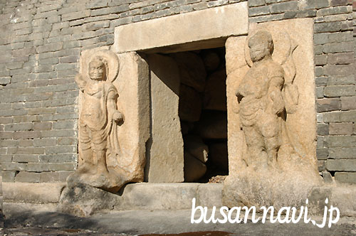 On the four corners of the wide stone pagoda stylobate, and on the four sides of the first floor pagoda body, the “Inwangsang” carved in a soft yet powerful shape that protects against Buddhism on both sides of the granite door offers a glimpse of the outstanding stone art of the Silla period.