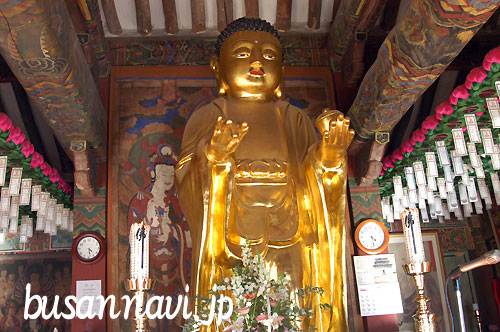 In the precincts, an octagonal old millennium well called Samryong Byeongeojeong Pavilion, designated as National Treasure No. 30, two flagpole supports made of granite, the upper part converted to Japanese style, and a 3.45-meter-high bronze statue of Silla. On the pedestal of the stone monument, the word “Silla Hwajengguksajibjeok” engraved by Kim Jeong-hee, a literary man of the late Joseon Dynasty is engraved.