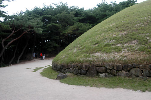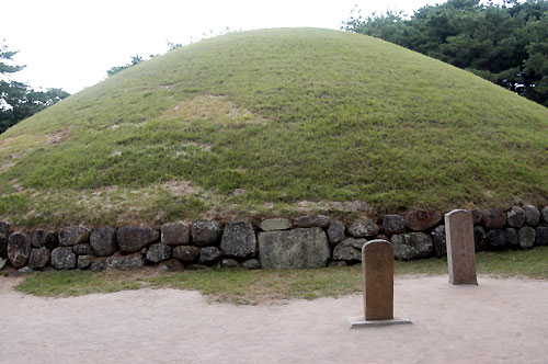 The royal tombs, with a total circumference of 74m, a height of 6.8m, and a diameter of 24m, were stacked in a round shape with soil, and the lower part was stacked with two to three layers of natural stones to protect the tomb.