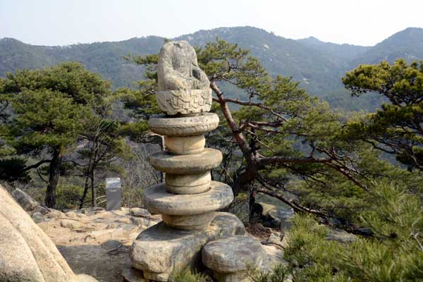 Passing in front of the Rock-carved Seated Buddha and turning to the right of the peak, you will finally meet the three-story stone pagoda. Standing in front of the stone pagoda, you can see Gojibong Peak standing tall to the south and Barry Plain embracing the Hyeongsangang River to the west.