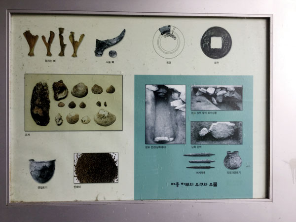 Excavation in 1920 revealed the upper limit of the shell mound when the Chinese currency of the new dynasty founded by Wang Mang (王莽) was unearthed. In addition, the carbonized rice discovered together is becoming a very important material for researching Korean rice.