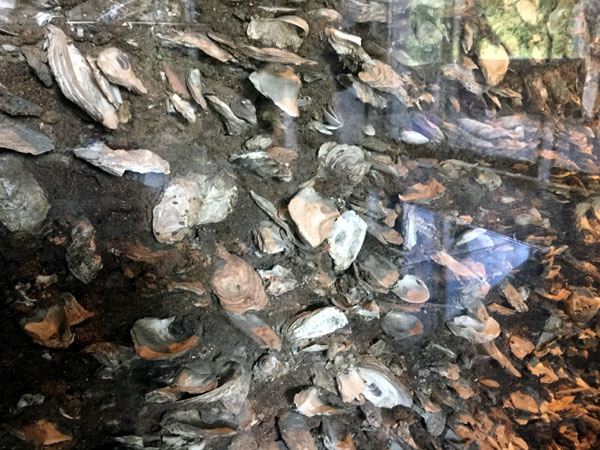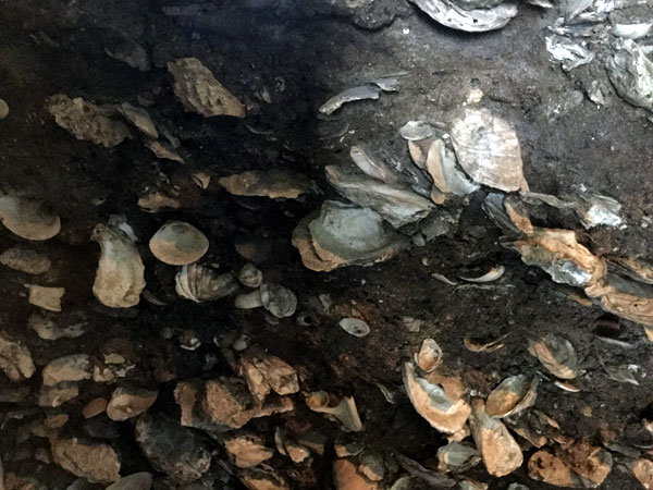 Gimhae Hoehyeon-ri shell mound is located on a small gourd-shaped hill from east to west at the eastern foot of Bonghwang Grand Park in Gimhae. The scale is about 120m from east to west, 30m from north to south, and about 6m high. Most of the shell mounds are covered with bushes, except for the two central shell mounds exposed to natural rocks, and the east and south sides are overgrown with trees. The shells are thickly piled on the south and west sides centered on the top of the hill, whereas the east and north sides are thinly stacked.