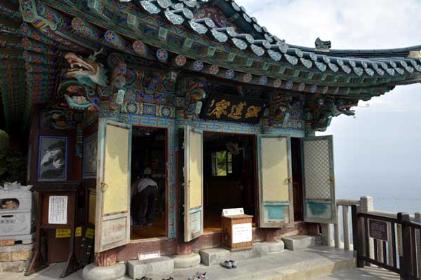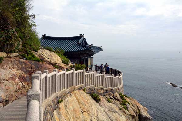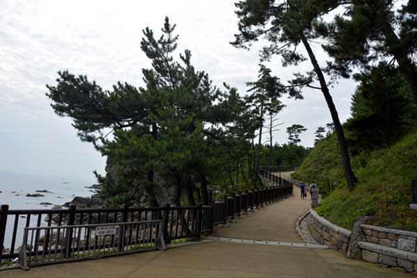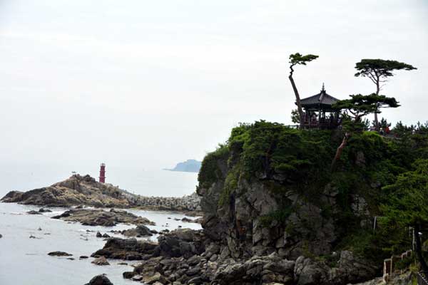Uisangdae, a fantastic match for the sunrise of the East Sea, Hongryeonam Hermitage, on a high cliff to the north, was built on a coastal stone cave where it is said that Uisang received crystal beads and magic beads from Avalokitesvara Bodhisattva. This area is designated as Historic Site No. 495.