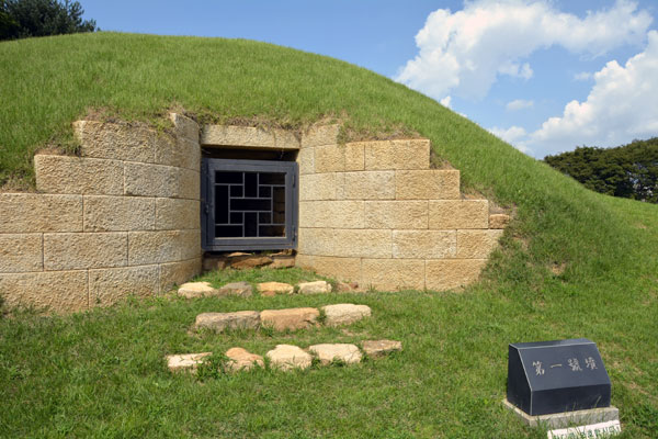Passing through the main gate of Baekje Ancient Tombs in Bangi-dong and climbing the stairs, you can see the peaks one after another on a gentle slope. The first, second, third, and sixth tombs are located on the northwest hill, and fourth, fifth, seventh, and eighth tombs are located in the southeast.