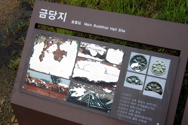 군수리사지는 중문, 탑, 금당, 강당이 남북일직선상에 배치된 일탑일금당식 가람으로 조성되어 있습니다.