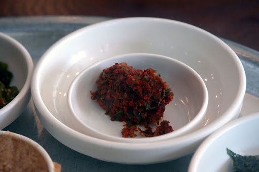 海雲台のテグタンは、赤い唐辛子が入ってない淡白なスープです。いわゆる日本でいうちり鍋です。 白子や肝などは入れないテグタンは、淡白であっさりしたタラの頭とボリュームのある肉厚の白身、煮込まれた大根、ネギ、赤い唐辛子は使わないが、粉の青唐辛子は少し入っていて、ピリッと辛いスープはさらに食欲を誘ってくれます。 辛いものがまったく食べれない方もこのテグタンは気軽に食べれます。 また、プサン地下鉄2号線の近くにあるリベラホテルの手前にも支店がありますので、この店でもさっぱりしたテグタンを味わうことができます。