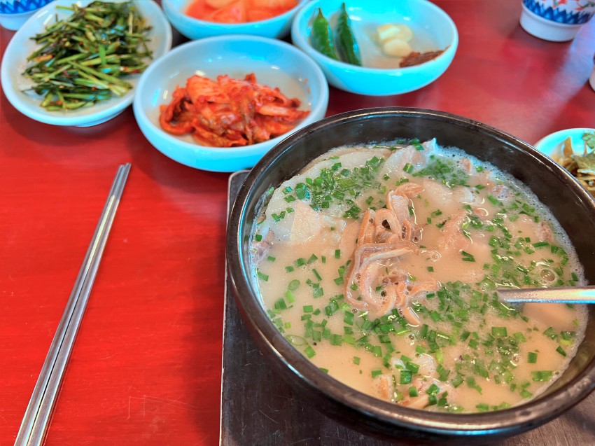 一般的なテジクッパとは異なり、値段は少し高めですが、澄んだスープの釜山風と、濃厚な豚骨スープの密陽風の中から、好みに合わせて選べるのが特徴です。
