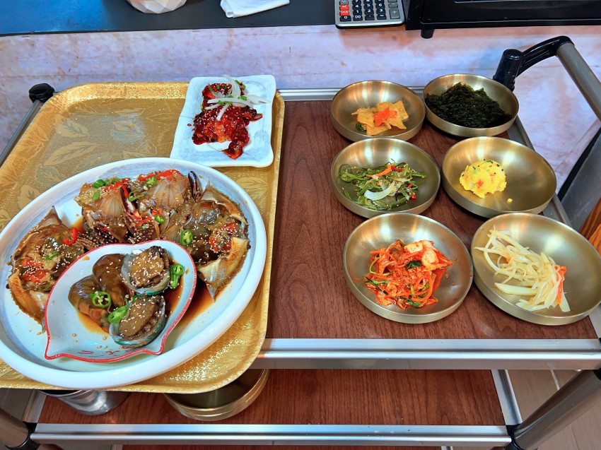 店主特選盛り合わせ :醤油蟹、辛味蟹、アワビの醤油漬け、エビの醤油漬け、味噌チゲ、健康ご飯 (2名様基準) 約78,000ウォン~92,000ウォン