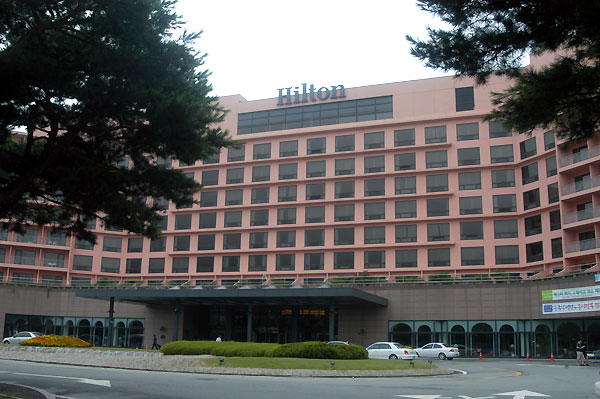 慶州ヒルトンホテルは1991年、遺跡地中のリゾート地である普門湖の湖畔にオープンしたピンク色の最高級ホテルです。世界のヒルトンだけあって、ロビー、レストランなど数々の施設の充実しています。