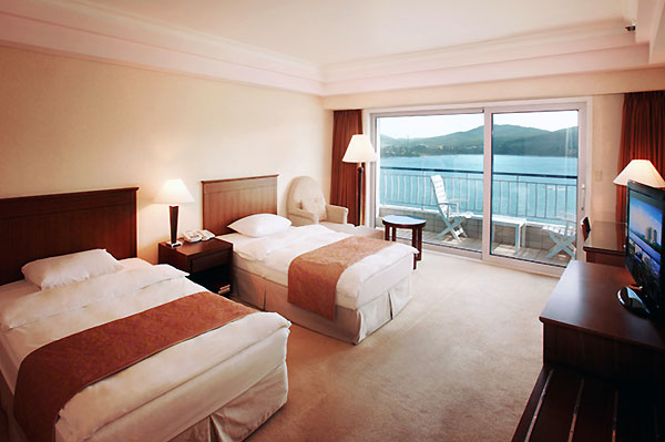 また、春には湖岸に2万本の桜が植えられているので素晴らしいお花見が楽しめます。ホテル館内は地上12階・地下2階、449室の客室と1000人収容できるコンベンションホール、韓・和・中・イタリアンの多種多様のレストラン、8個の宴会場、サウナ、スカッシュコート、ゲームセンター、ボーリング場、屋内外プールなどのスポーツ施設を備えています。客室は全体的に広く造られているためファミリー客が多く、オンドル部屋は常に人気です。若干交通が不便な慶州、ホテル-慶州駅間の移動は無料シャトルバスを利用するのも良いでしょう。