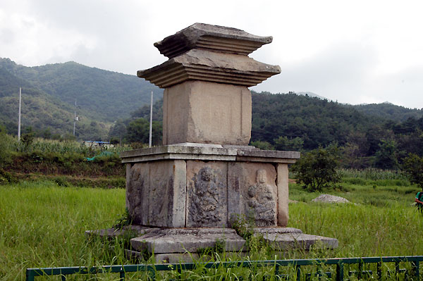 吐含山の南麓に位置する末方里(マルバンリ)の崇福寺址には、新羅の栄枯盛衰を物語るようにきれいに整備されている広々とした敷地の上に三重石塔二期がぽつんと立っています。1931年、日本人の杉山氏によってこの寺址が世間に知られるようになり、当時は末方里寺址(マルバンリサジ)と呼ばれてきましたが、1939年、寺址から発見された碑片10数点が新羅の学者・崔致遠が刻んだ「大崇福寺碑」であることが確認され、ここが「三国遺事」が伝える崇福寺であることが明らかになりました。三国遺事の元聖大王条「王の陵は吐含山岳の西洞の鵠寺にある。崔致遠の碑あり」