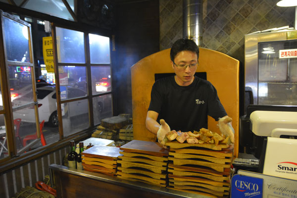 慶州の城乾洞に位置する豚焼肉専門店・トンクアンは、厚さ1センチほどの分厚い豚肉を使って、肉汁が溢れるジューシーな豚の焼肉がたまらないほど美味しいです。特に豚の皮まで焼きあげる五枚肉・オギョプサルは、カリカリに焼きあがった美容に良いとされるコラーゲンペプチドが多く含まれている豚の皮と肉感溢れるジューシーな豚肉の食感が絶妙です。