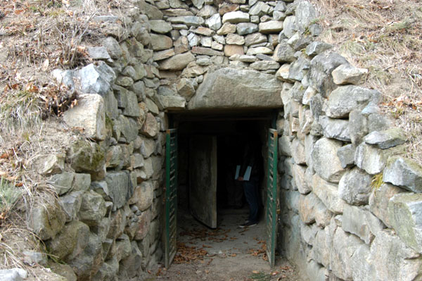 慶州市の太宗武烈(29代、654~661)王陵からKTX新慶州駅方面へ約2キロほど離れている海抜114メートルの獐山(ジャンサン)南東の丘陵末端部に位置する統一新羅時代の古墳です。発掘調査で人や獣の形を粘土で焼いた埴輪が発見されて、土偶塚と呼んでいます。統一新羅時代につくられた橫穴式石室墳で封墳の直径は10メートル、高さ7メートルである獐山土偶塚は、遺体を置く屍床台が東西方向に置いてあります。東側には頭を固定させる石の枕があり、西側には足を支える足座があります。