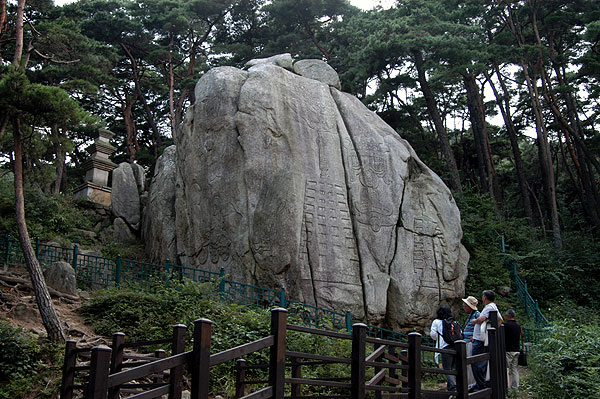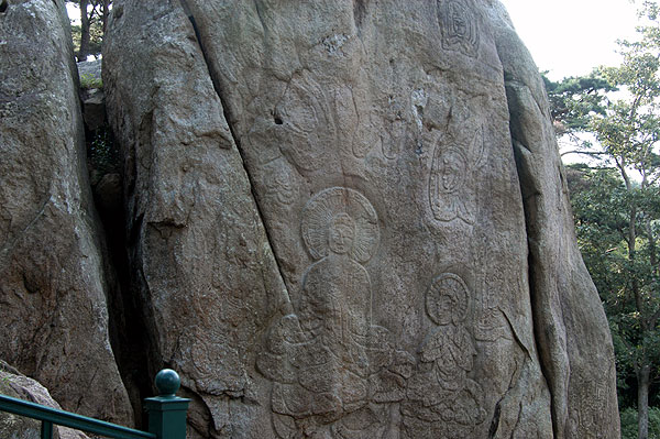 塔谷には北面が九メートル、幅が約六メートルの東・北・西三面が断崖をなしている巨大な岩石があり、巨岩の四面にわたって仏像・菩薩像・塔をはじめ飛天像や樹木など合計34点が絵画のごとくに彫刻されています。特に、岩の正面にあたる北面には九層塔と七層塔が東西に浮き彫りに薄く描写され、新羅時代の木塔の様子がうかがえる貴重な資料になります。