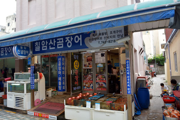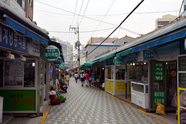 해운대시장 가마치통닭, 돼지국밥, 생선회, 곰장어 식당과 , 칼국수, 떡볶이, 김밥 등을 먹을 수 있는 해운대 분식집, 슈퍼, 잡화점도 긴 골목에 빽빽이 모여 있습니다.