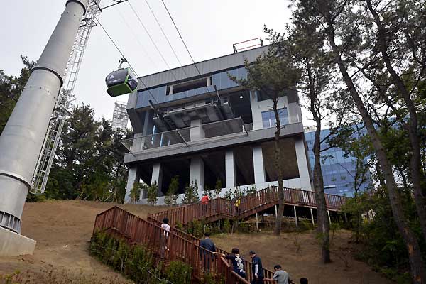 공원 주차장에서 조금만 올라가면 케이블카를 탈 수 있는 송도 스카이 파크가 있습니다.