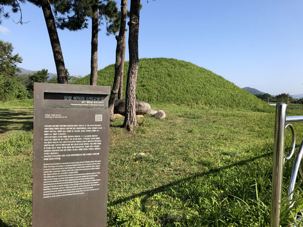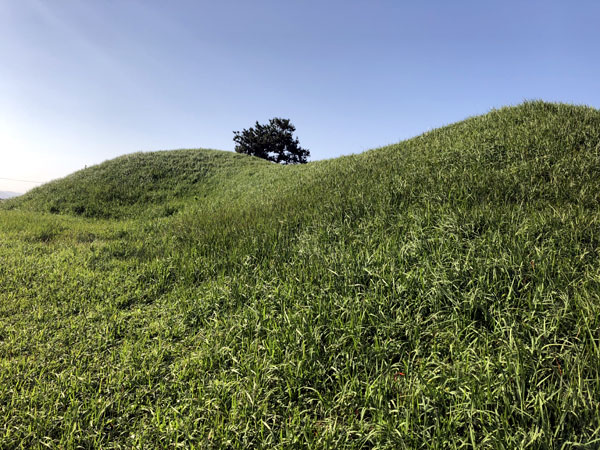 안녕하세요. 광주광역시 북서쪽으로 차로 약 30분정도 떨어진 함평예덕고분군은 5세기말 전방후원분 1기와 7세기 백제계 석실분 1기 등 2기가 인접하여 남북으로 조성되어 있습니다.