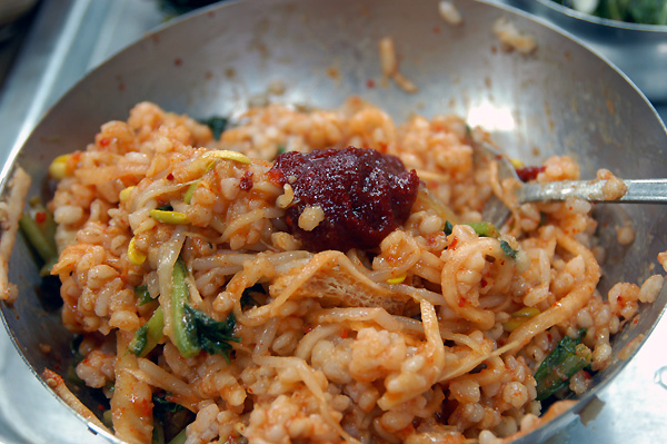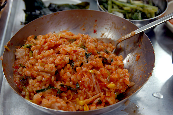 새벽부터 상인들과 살아있는 생선 등으로 활기가 띄는 부산 최대의 어시장인 자갈치시장은 생선회와 해산물이 유명하지만 아침 일찍부터 일하는 사람들을 위해 건강하고 저렴한 가격으로 먹을 수 있는 24시간 영업하는 보리밥 식당이 몇 군데 있습니다.