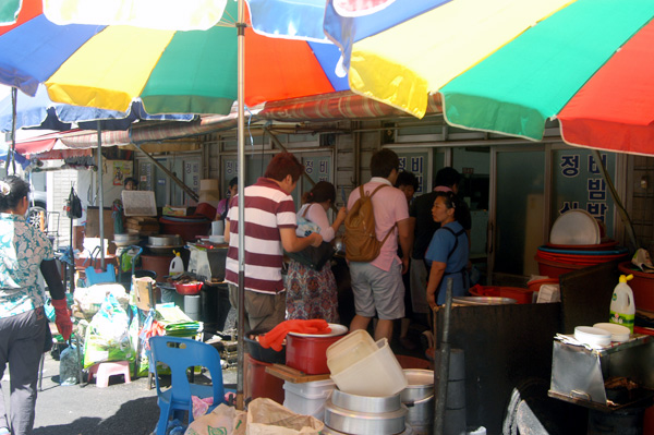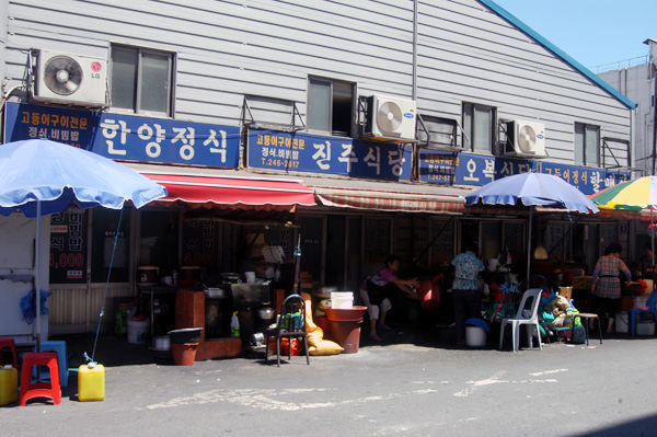 항상 관광객과 쇼핑객들로 북적이는 부산의 유명한 관광지이면서도 어시장인 자갈치시장은 동트기 전부터 개장하여 싱싱한 어패류를 사려는 사람들로 더욱 활기를 띠게 됩니다. 그렇게 아침을 일찍 여는 사람들을 위한 식당이 자갈치시장에 있습니다.