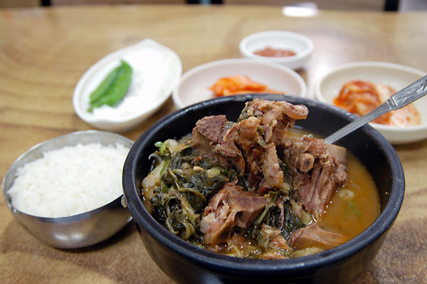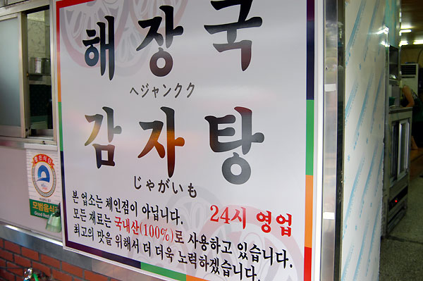 그렇게 넓지 않은 식당이지만 부산 현지 손님들이 많고 최근 일본 손님들도 많이 찾는다고 합니다. 이 가게의 주된 메뉴는 감자탕과 고기 돼지 뼈를 사용한 해장국 두 가지로 일본어로도 메뉴명이 표기되어 있습니다.