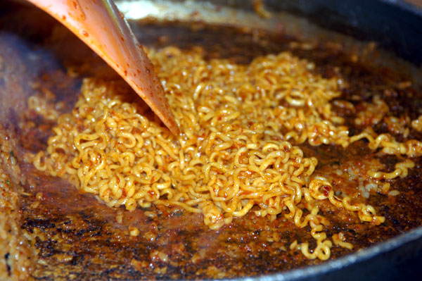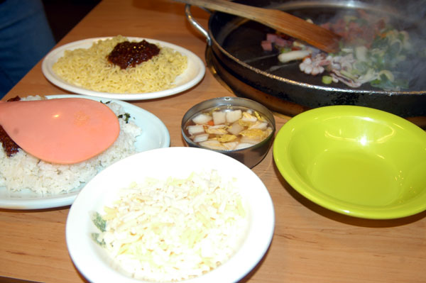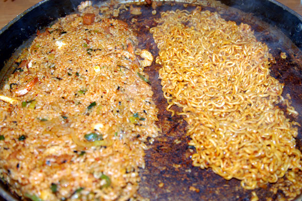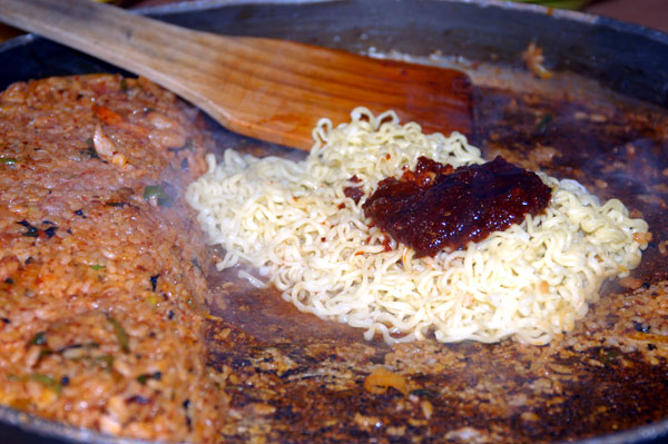 모듬 철판볶음밥, 토핑으로 라면과 치즈를 추가했습니다.