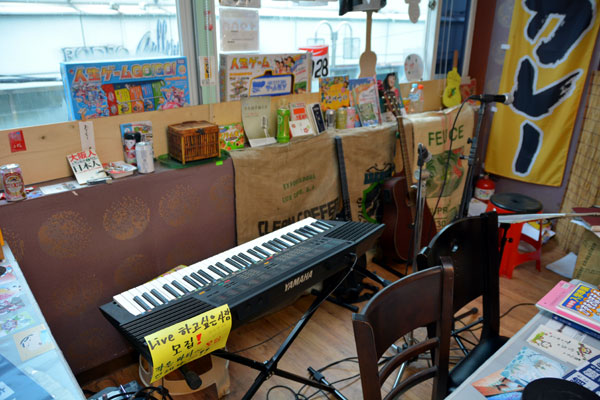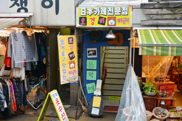 가게 안에는 일본어와 한국어로 쓰여진 많은 것들이 장식되어 있습니다.