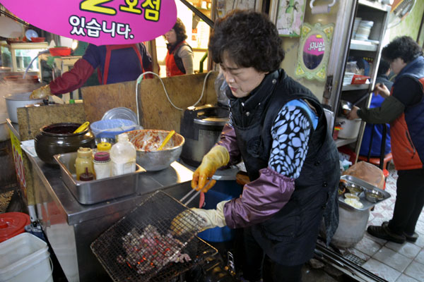 국철 부전역과 부산 최대 식품시장에 위치한 연탄불 곰장어구이 전문점