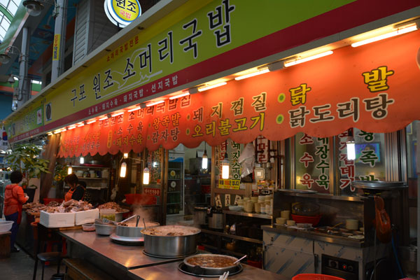 오전 9시부터는 곡물시장이 서는데 쌀보다는 수수, 밀, 보리, 팥, 조, 콩, 메밀 등 평소 보기 힘든 곡물이 많이 거래됩니다. 이후부터 장이 끝날 때까지는 곡물뿐 아니라 낙동강변의 수산물과 생필품, 약제, 관상식물, 의류 등이 팔립니다. 특히 바다에서 나오는 생선들이 모두 자갈치 시장으로 모인다면 모든 민물고기는 이곳, 구포시장으로 모인다고도 합니다.