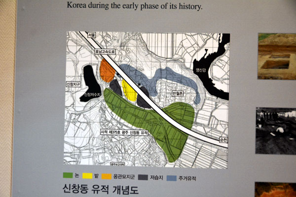 사적 제375호로 지정된 광주광역시 광산구 신창동에서 발굴된 철기시대 말기부터 원삼국시대 초기에 걸친 광주 신창동 유적의 유물을 전시하고 있습니다