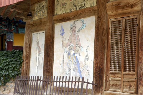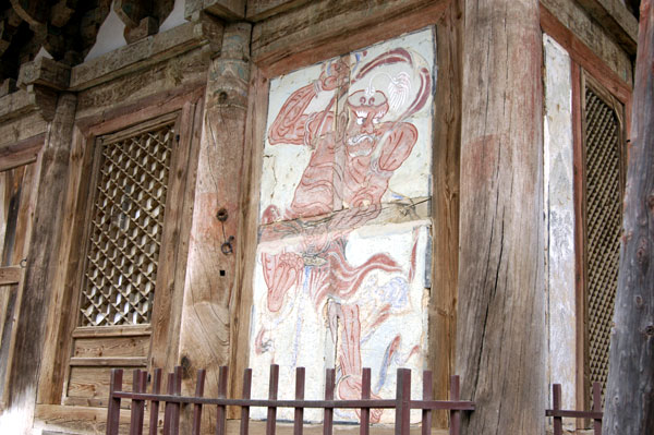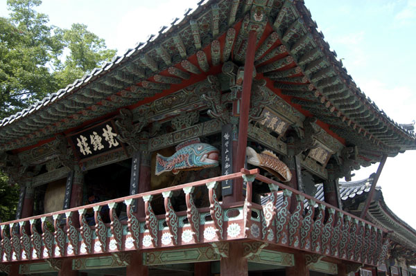 천왕문 사천왕상과 범종루에 매달려 있는 법고와 목어