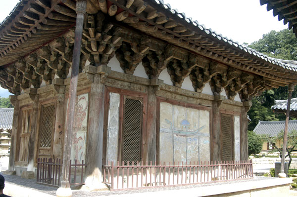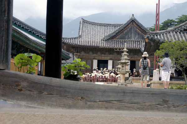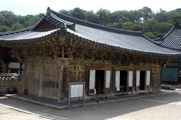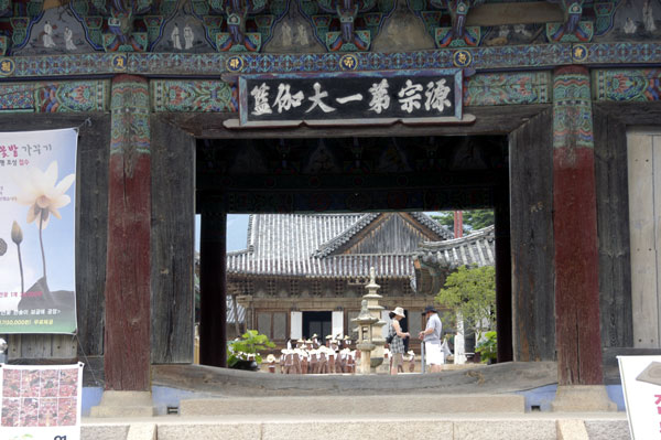부처님의 깨달음 세계에 이르는 마지막 관문인 불이문 너머로 대웅전이 보입니다. 불이문을 나가면 오른쪽에 관음전이 있습니다.
