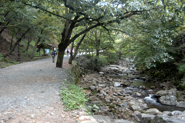 송광사 주차장에서 물소리를 들으며 계곡을 따라 산길을 따라 올라가면 사찰이 나옵니다.