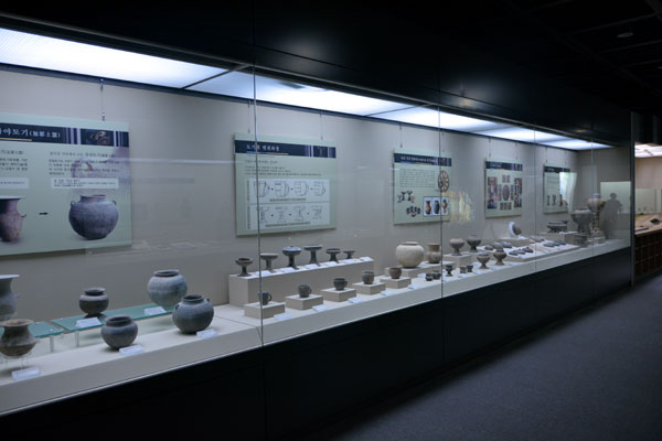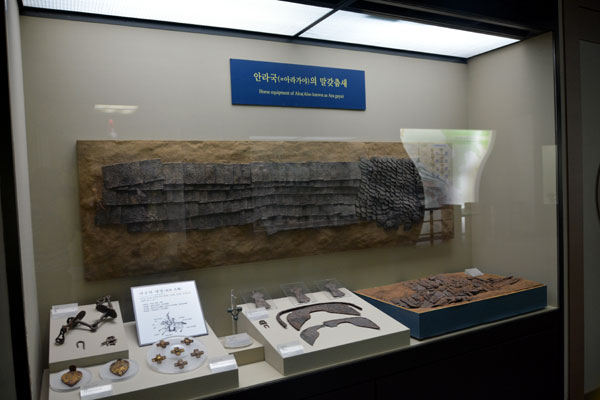 各種土器や花火文様の高杯、馬甲など、阿羅加耶の土器文化と金属文化がわかりやすく紹介されています。