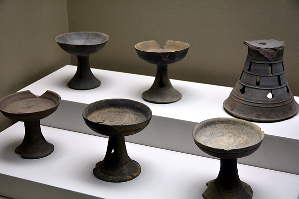 花火文様の高杯、文様のある蓋、車輪形の土器、異形土器