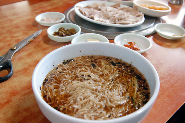 메밀 막국수와 돼지 목살을 삶은 편육