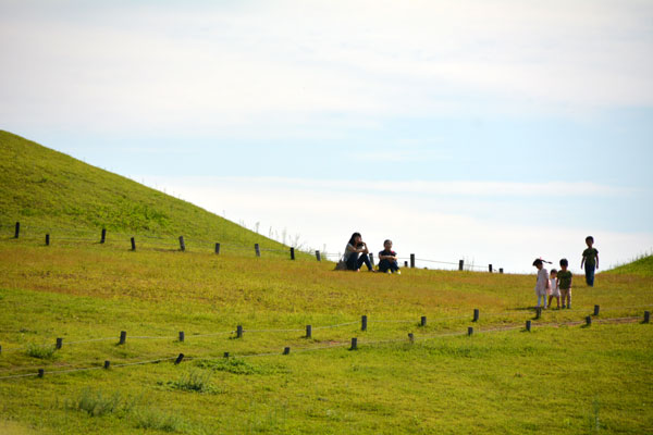 古墳の周りは散歩できるように綺麗に整備されており、古墳の上からも固城市内が一望できます。