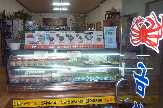 식당 입구 앞이 주차장으로 사용하는 이곳에 들어가면 “금성관을 찾아오신분들에대게장을 저렴한 가격에 판매합니다!” 라는 글자와 함께 가격표시가 된 각종 대게장사진이 눈에 들어옵니다. 이 집은 집에서도 손쉽게 대게장 순두부를 만들어 먹을 수 있도록 ‘대게장’과 ‘게장’ 등을 즉석에서 판매하기도 한답니다.