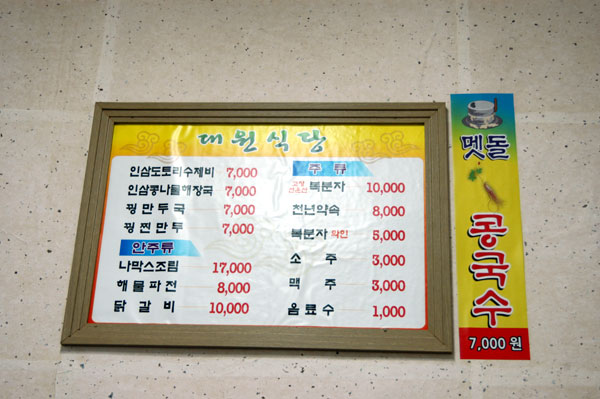 | 飲み物 | 1,000ウォン |