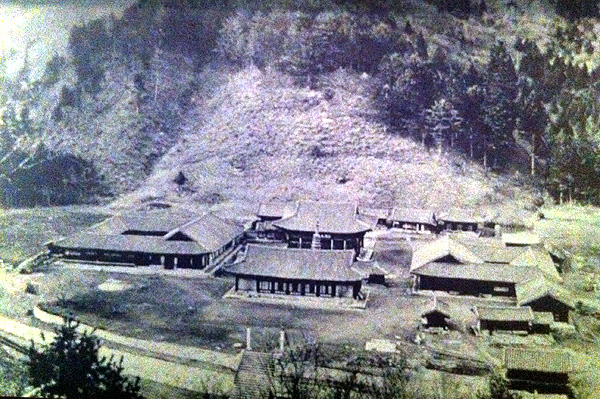 天王門と本堂、八角九層石塔、石造菩薩座像(複製品)