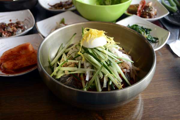 - 牛肉チヂミと一緒に食べるビビンネンミョン